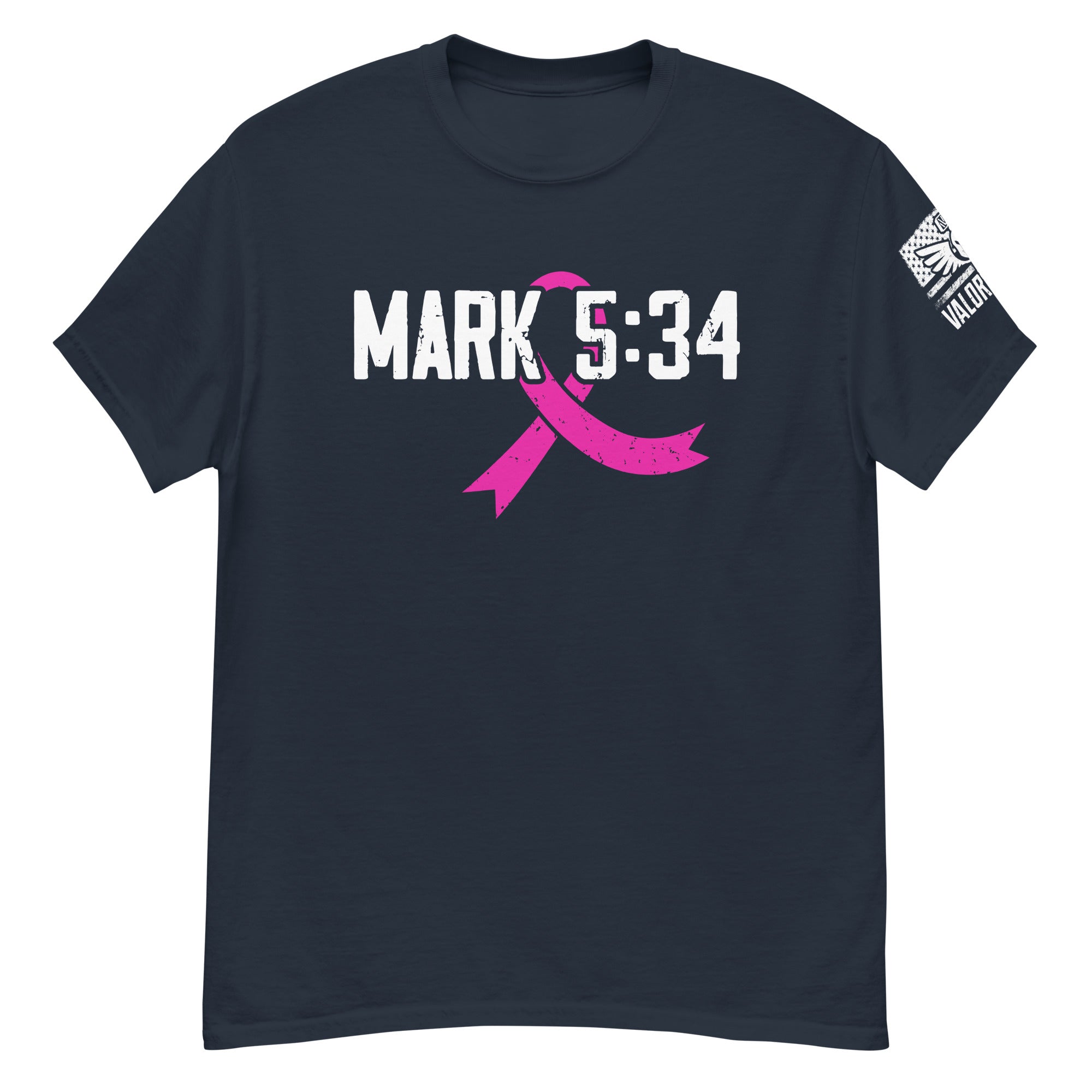 Mark 5:34 Cancer Ribbon Tee — faith, fight, and a reminder to keep going.